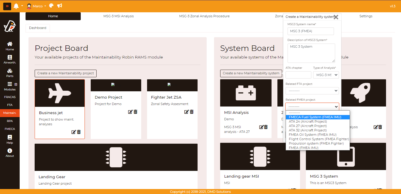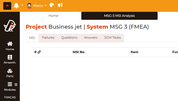 This interconnection provides a link to items and failure modes from FMEA projects to use within MSG-3 MSI Analysis.
