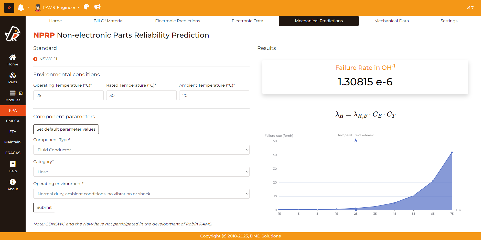 RPA > Mechanical Predictions contains the NSWC-11 standard for Non-Electronic Parts. The following sections appear: